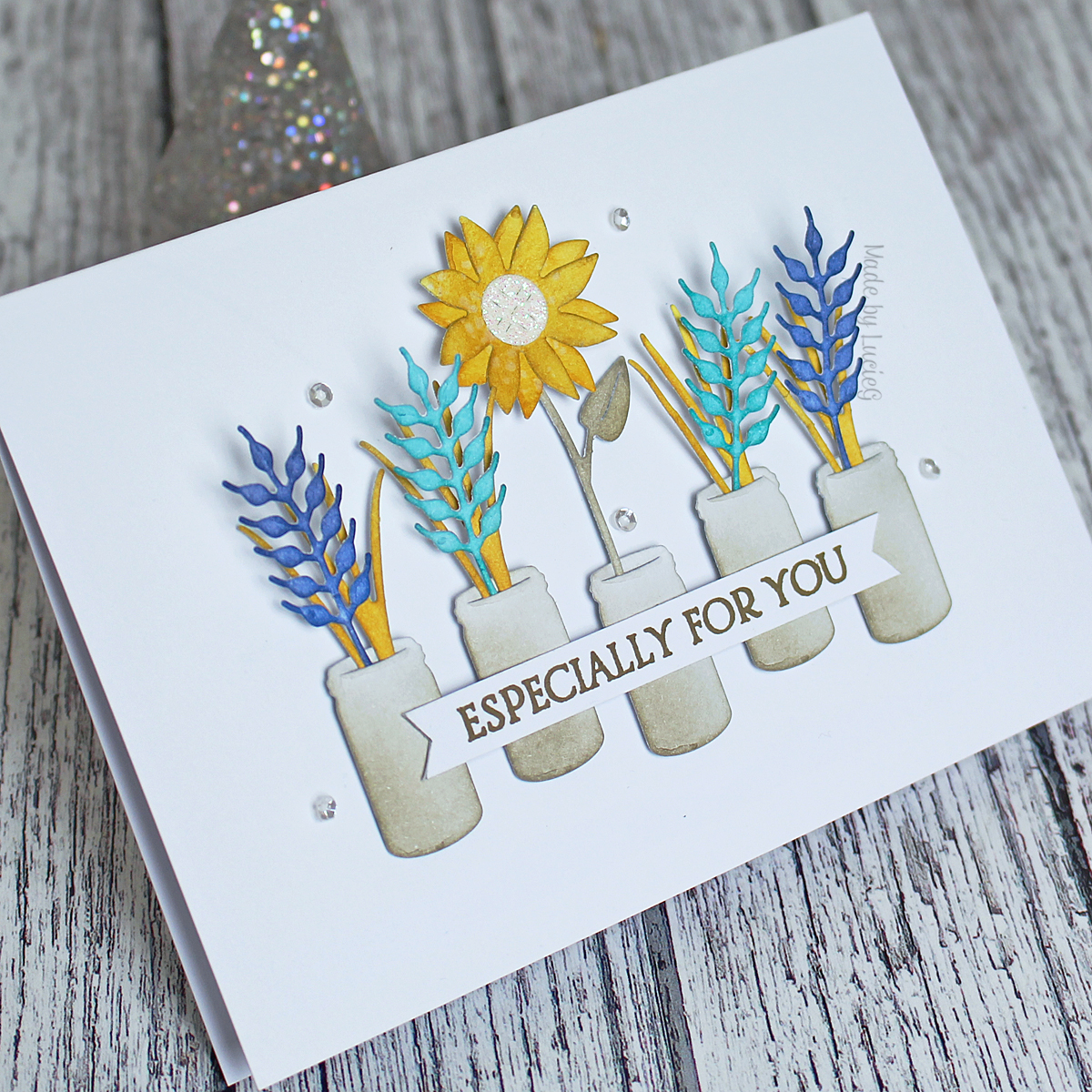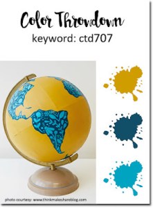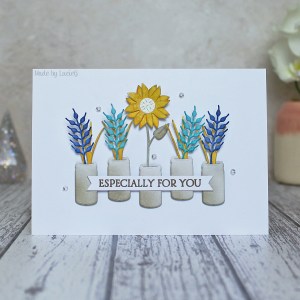After our very hot summer, I am totally ready for autumn with its cooler temperatures, beautiful colours and of course all the pretty decorations! So when I saw the sketch, I immediately thought of the wheatsheaves from the Autumn Decor die set (51-653) that I bought a few years ago! This is such a versatile set – I couldn’t wait to get my hands on it in 2020 and basically stalked our UK retailer’s online store for weeks!! Anyway, I decided to use it with the Color Throwdown’s combo of mustard, navy blue and turquoise – I know that’s not a traditional palette for wheatsheaves, but it’s a lot of fun! I used distress inks to colour my die cuts, although surprisingly I ended up using Fossilised Amber rather than Mustard Seed as I felt the latter was a bit too bright.
