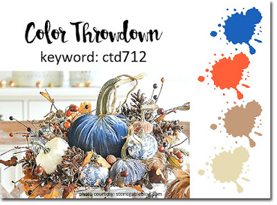 Today I’m playing along in the Color Throwdown challenge which has a fabulous palette of blue, orange, cream and kraft.