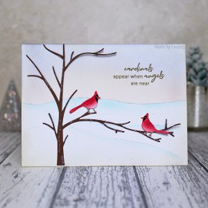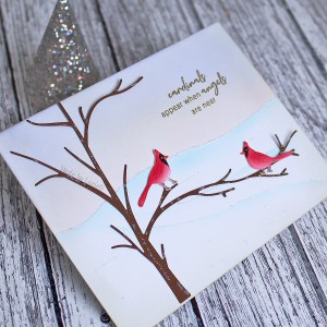 As soon as I saw the On a Limb die set (51-749), I could not wait to get my hands on it and play with those wonderful cardinal dies! I have bought MANY cardinal dies over the years but havn’t really found the right ones… until now! These dies are perfect to me – just the size and shapes that I have been looking for! Be warned, they will crop up on more festive cards!!!