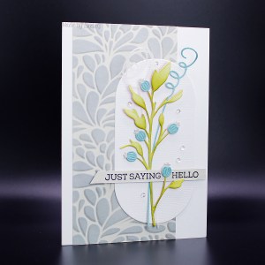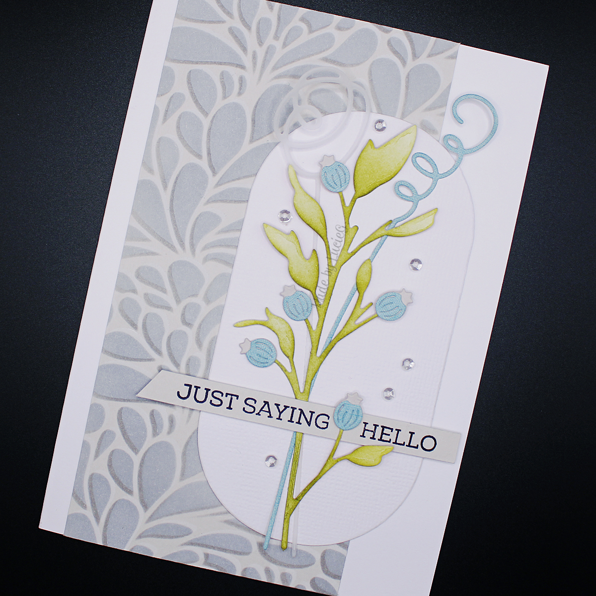 It took me a little time to come up with a design – and I ended up using so many different manufacturers on this card – a Tim Holtz stencil, dies by Spellbinders and Birch Press Design and a sentiment stamp by Concord & 9th!