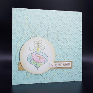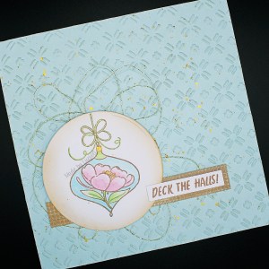 Anyway, for this card, I chose an ornament from the pretty Sparkle & Shine clear set (31-001) and coloured it with my Twinkling H2O paints. After die cutting the image, I added a light blend of distress ink around the edges.