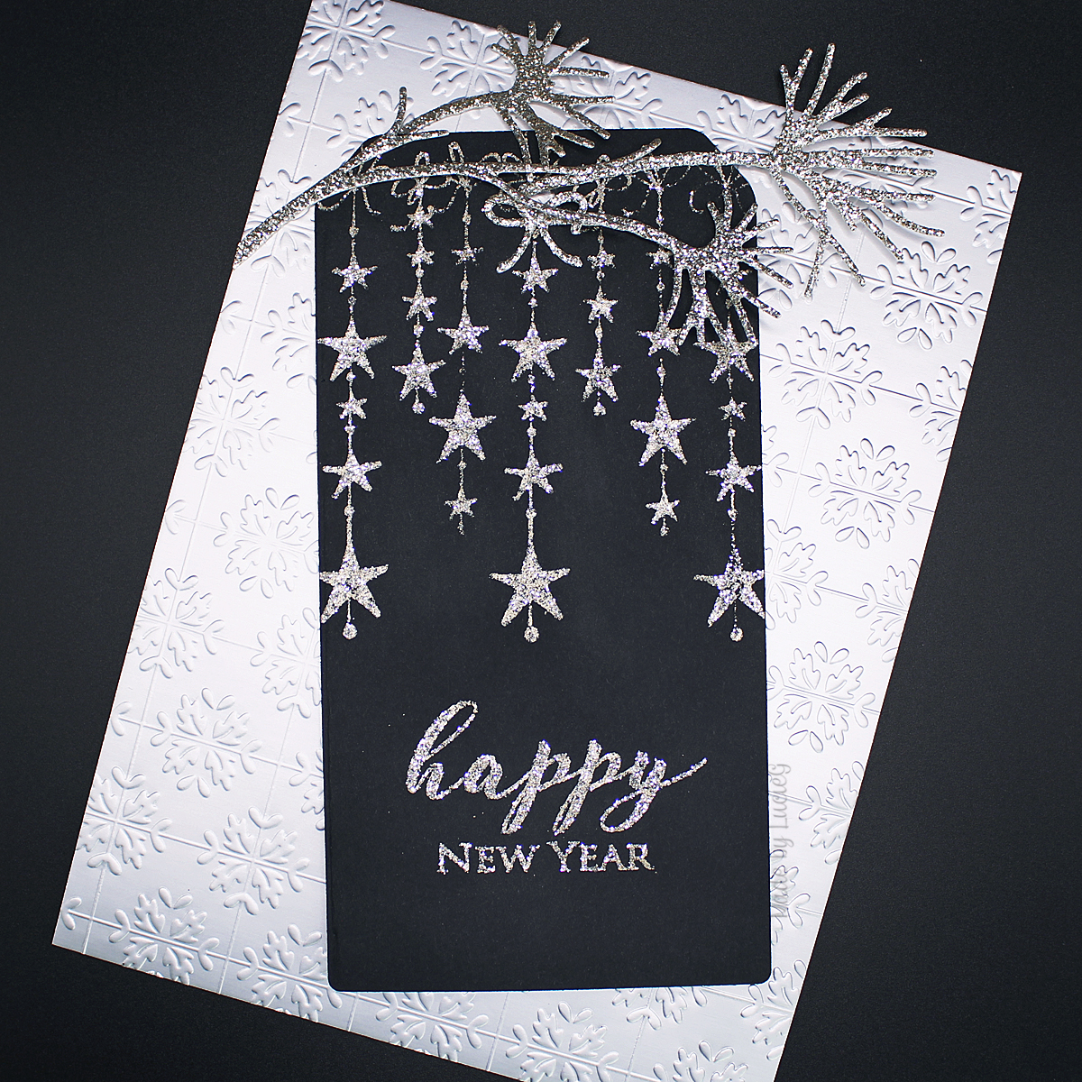 It’s that short time of year when my cardmaking attention turns to New Year cards. Ordinarily I use a lot of die cuts but today I wanted to use a pretty wood-mounted stamp that I’ve had for AGES plus some newer products kindly sent to me by Penny Black.