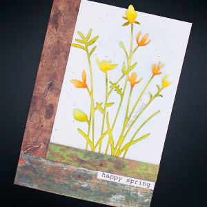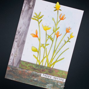 My focal point is the beautiful Backyard Floral Stems die by Memory Box and I added strips of paper from a Craft Consortium pad.