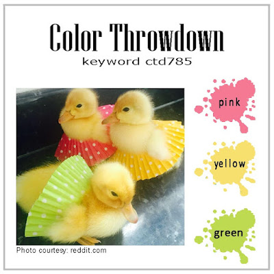 Today I’m playing along in this week’s Color Throwdown challenge where the colour palette is pink, yellow and green. Wonderful for Easter and spring cards!