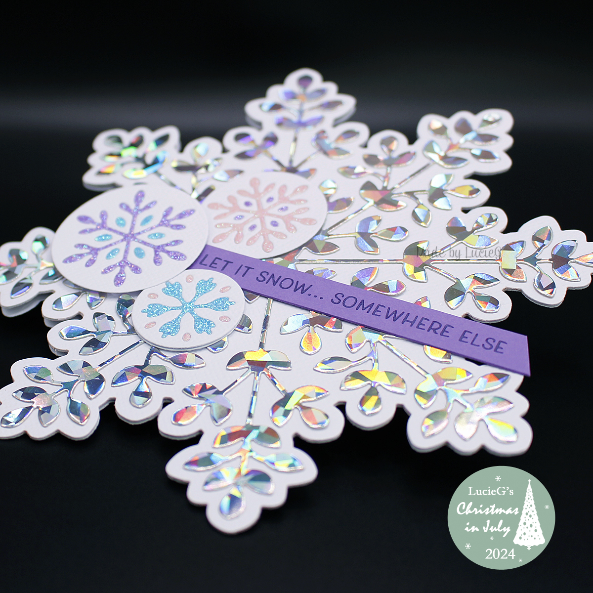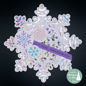 I used the fabulous Bibi Cameron Snowflake card Creator die set which I have coveted since it was released last year. This is one of those dies that I really wanted to see in real life before committing. Oh how I wish I still had one of the four bricks and mortar shops that I used to have within a 45 minute drive. Anyway, it was half price in the sale so I decided to get it. And it is BIG – 15cm point to point for the base. It quite an optical illusion though because this card doesn’t feel that bid.