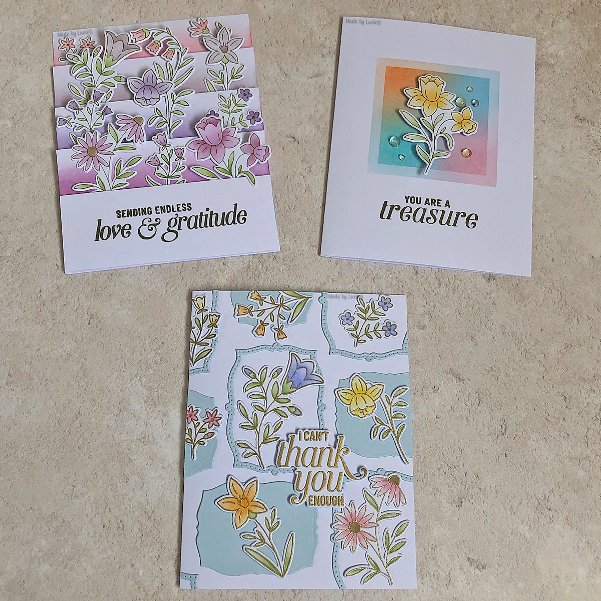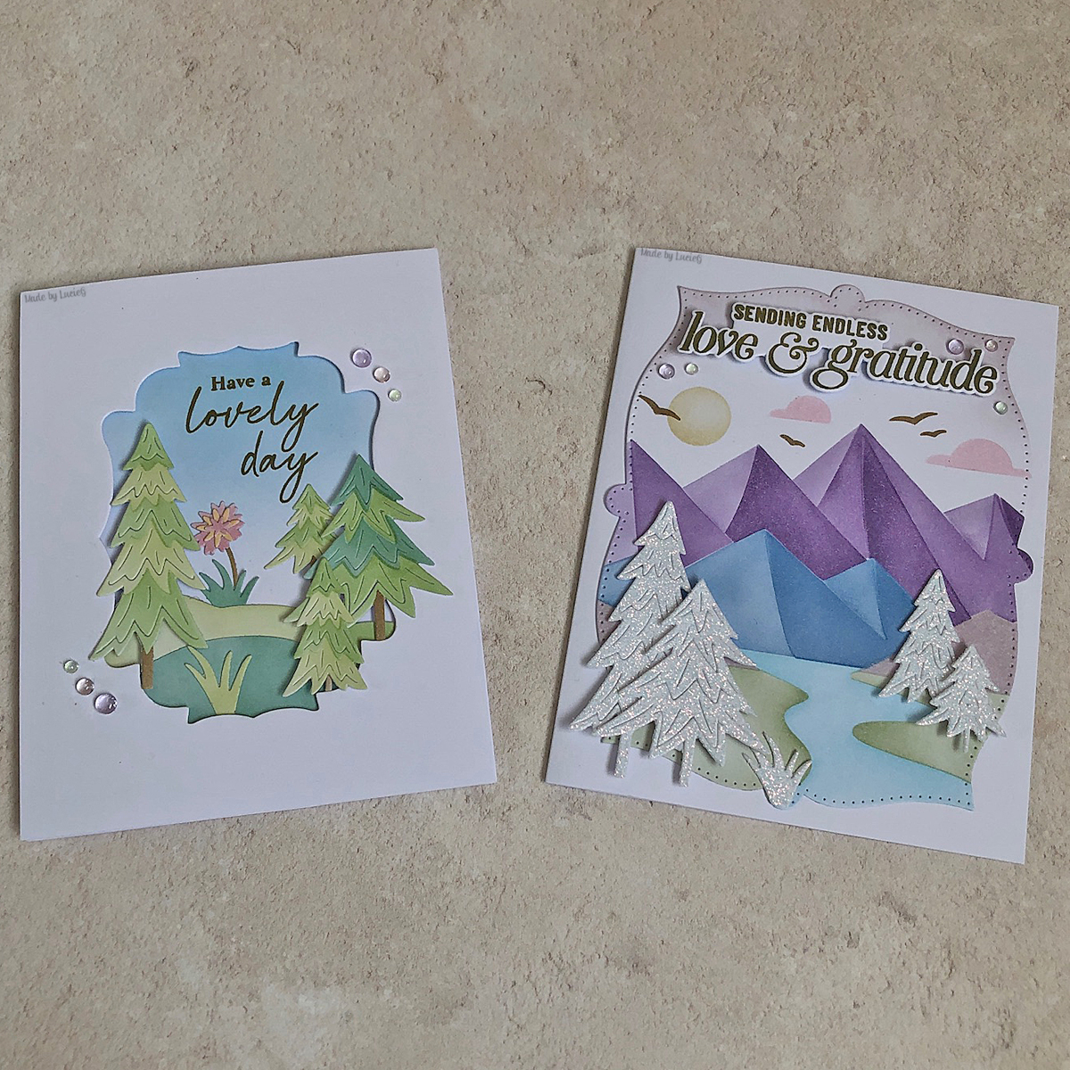 Class 3 was the last one on Day 1 and it finished at midnight so it was a late night! Heather Hoffman created two fun cards with dies and stencils. I switched up the colours again and although I wasn’t sure about the stencilled mountains, that card keeps catching my eye!