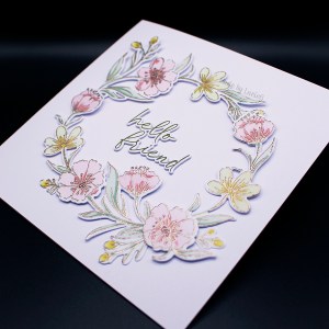 Their older products are quite difficult to get hold of in the UK and I know I missed out on a lot of beautiful releases. Happily I was able to get hold of the stunning Breezy Blossoms cling stamp/stencil/die suite. The red rubber stamps emboss beautifully and are a joy to colour!