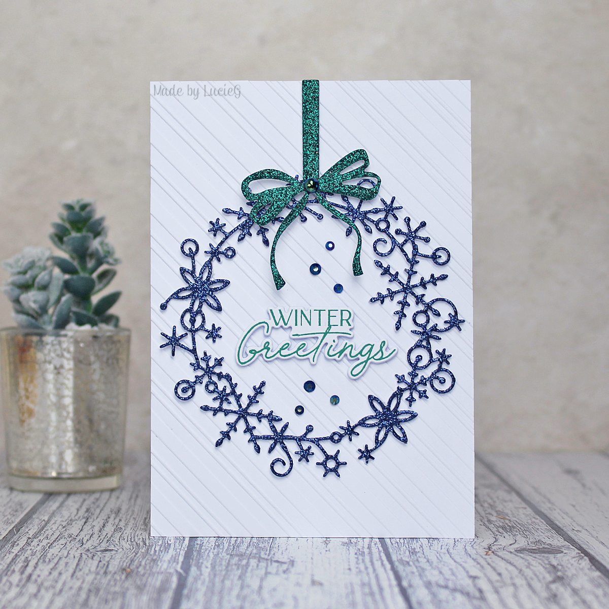 The star of today’s card is the Memory Box Frostyville Wreath from 2012!