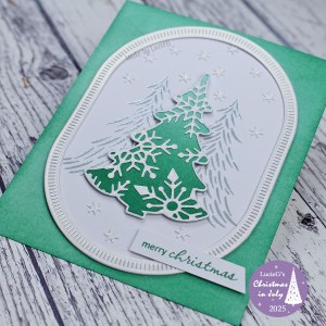 Today’s trees are courtesy of Stampin’ Up’s Decorative Tree set which I got last year. You do not want to know how many iterations I went through before settling on this card. I tried so many colours for the stamped trees and turned to my silver ink in desperation – it was a great relief when I liked the effect!