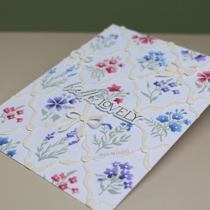 I was originally going to create a CAS card with the little flowers but I just couldn’t cut the background image when I finished the stamping and stencilling! Next time!!