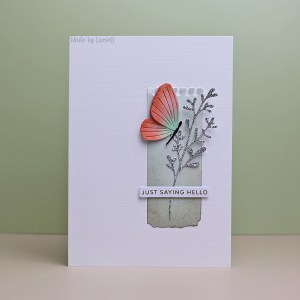 I’ve coveted the notebook pages die set for a while and so I happily grabbed he set when I had a discount code – they provide a great anchor for images! I cut one image from some patterned paper and added some Pumice Stone ink around the edges. I added an older Simply Graphic glittery die cut plus a pretty butterfly from the Memory Box Exquisite butterflies set.