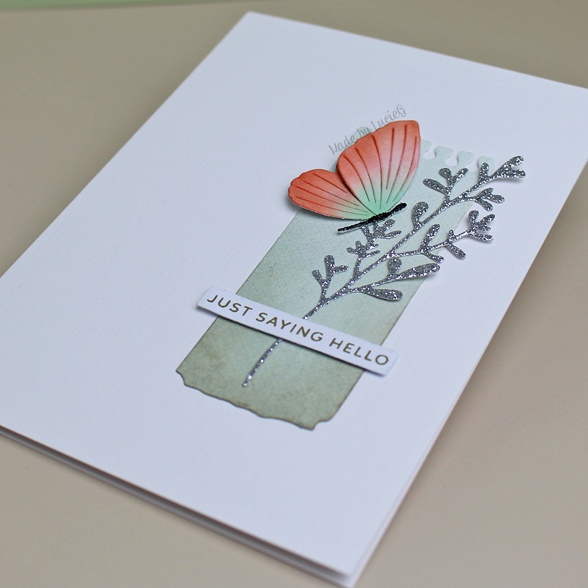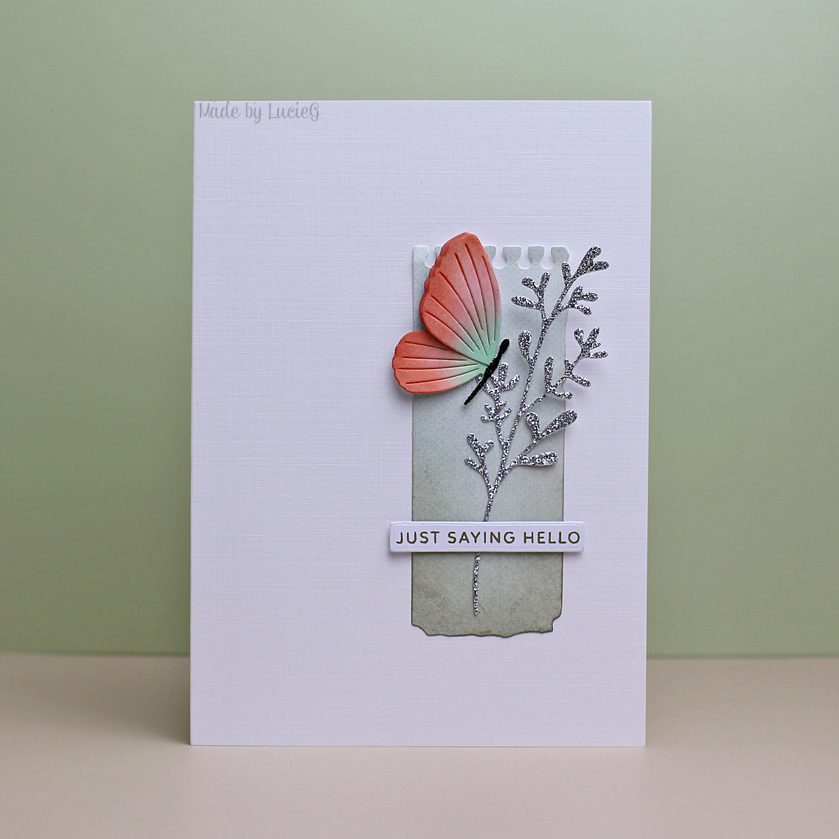 I’ve coveted the notebook pages die set for a while and so I happily grabbed he set when I had a discount code – they provide a great anchor for images! I cut one image from some patterned paper and added some Pumice Stone ink around the edges. I added an older Simply Graphic glittery die cut plus a pretty butterfly from the Memory Box Exquisite butterflies set.