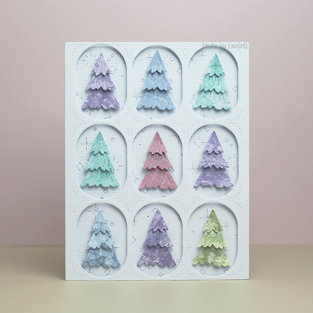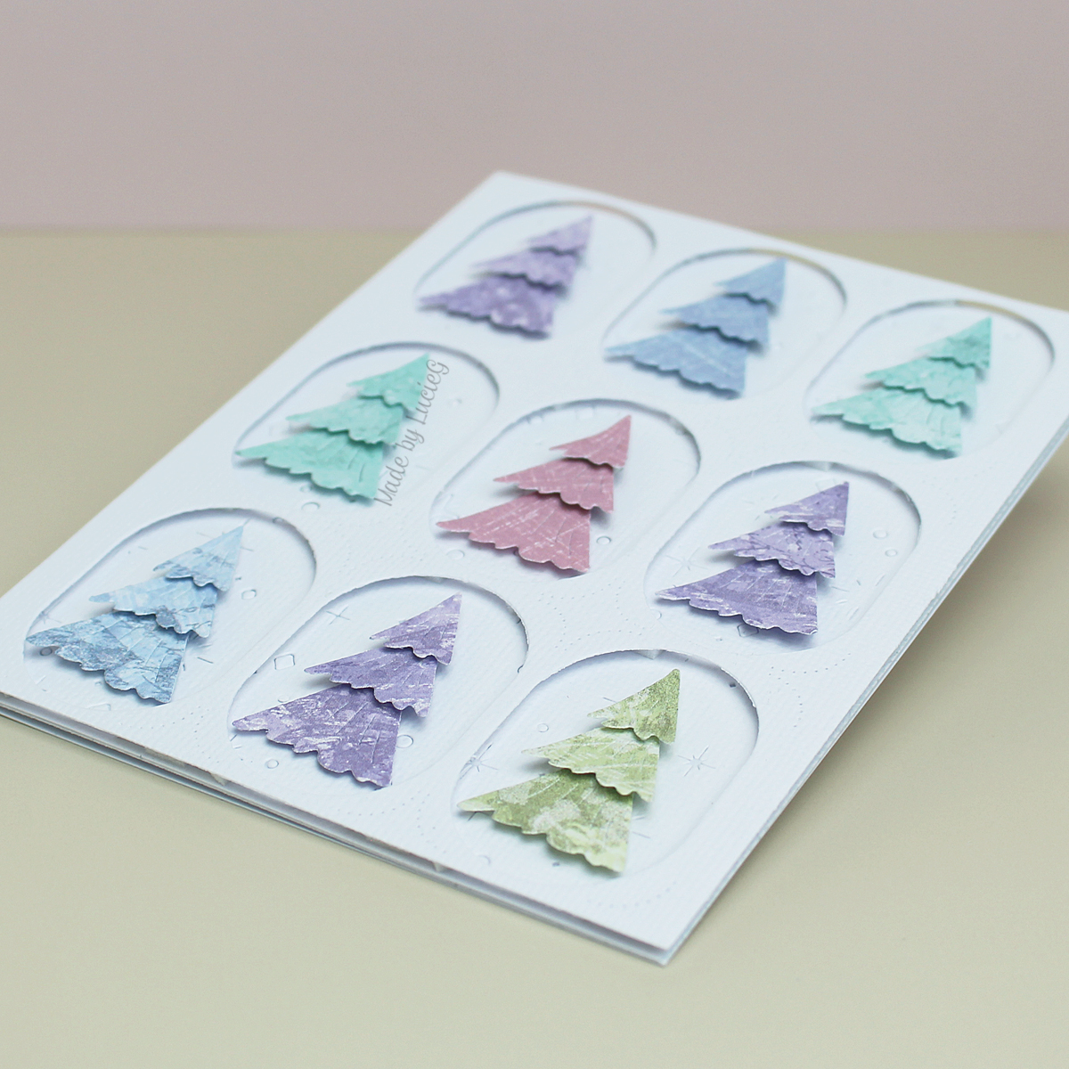 I tested a few tree designs and ended up using three layers from the smaller tree – The Stamp Market didn’t use the smallest layer in her design and I followed suit.