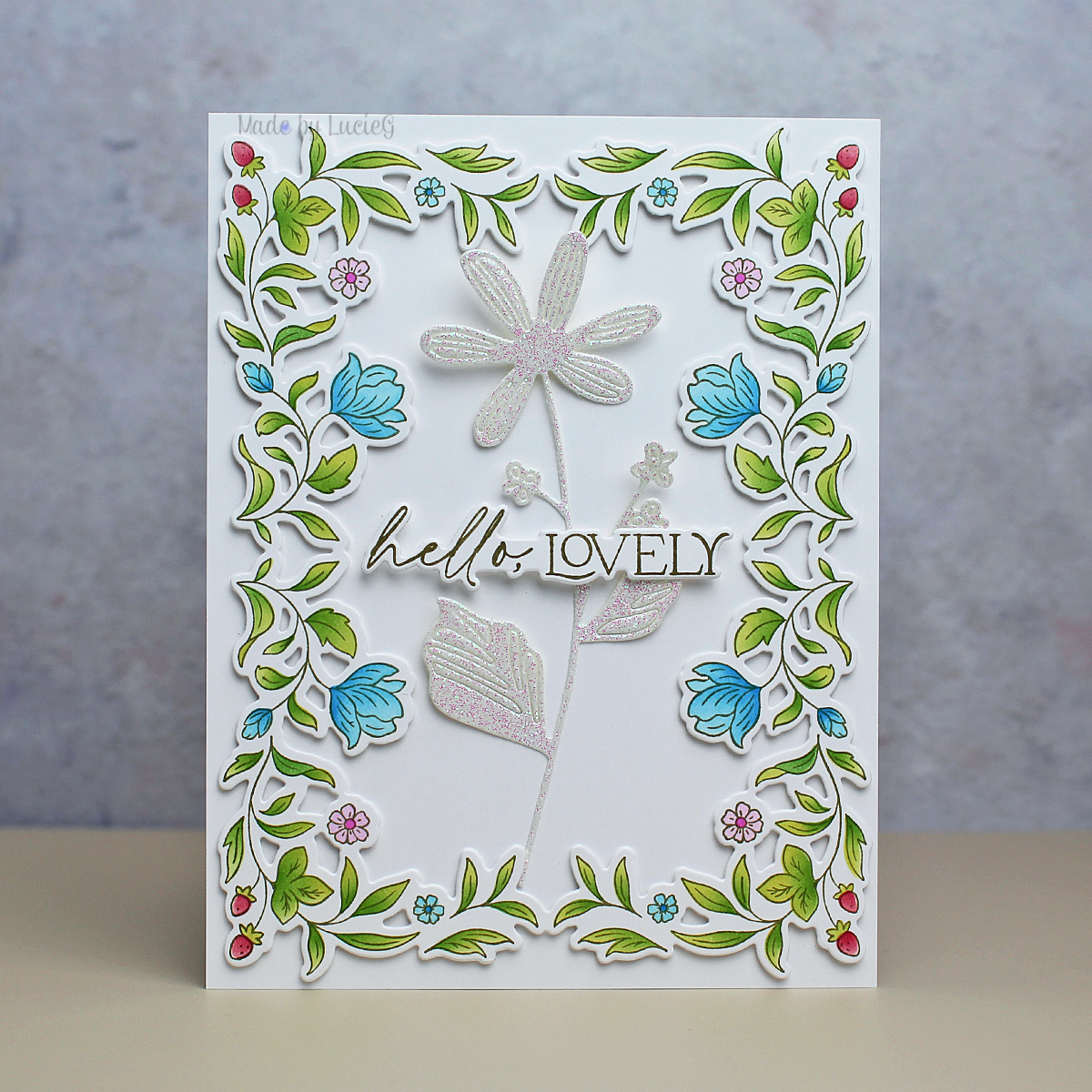 This Pinkfresh Studio Making Things Happen product suite was very much a last minute impulse addition to an order but I have lots of ideas for it! Today I kept it simple and paired it with a stem from one of my oldest Pinkfresh products – the Dainty Blooms die set from 2018. How is that EIGHT years ago?