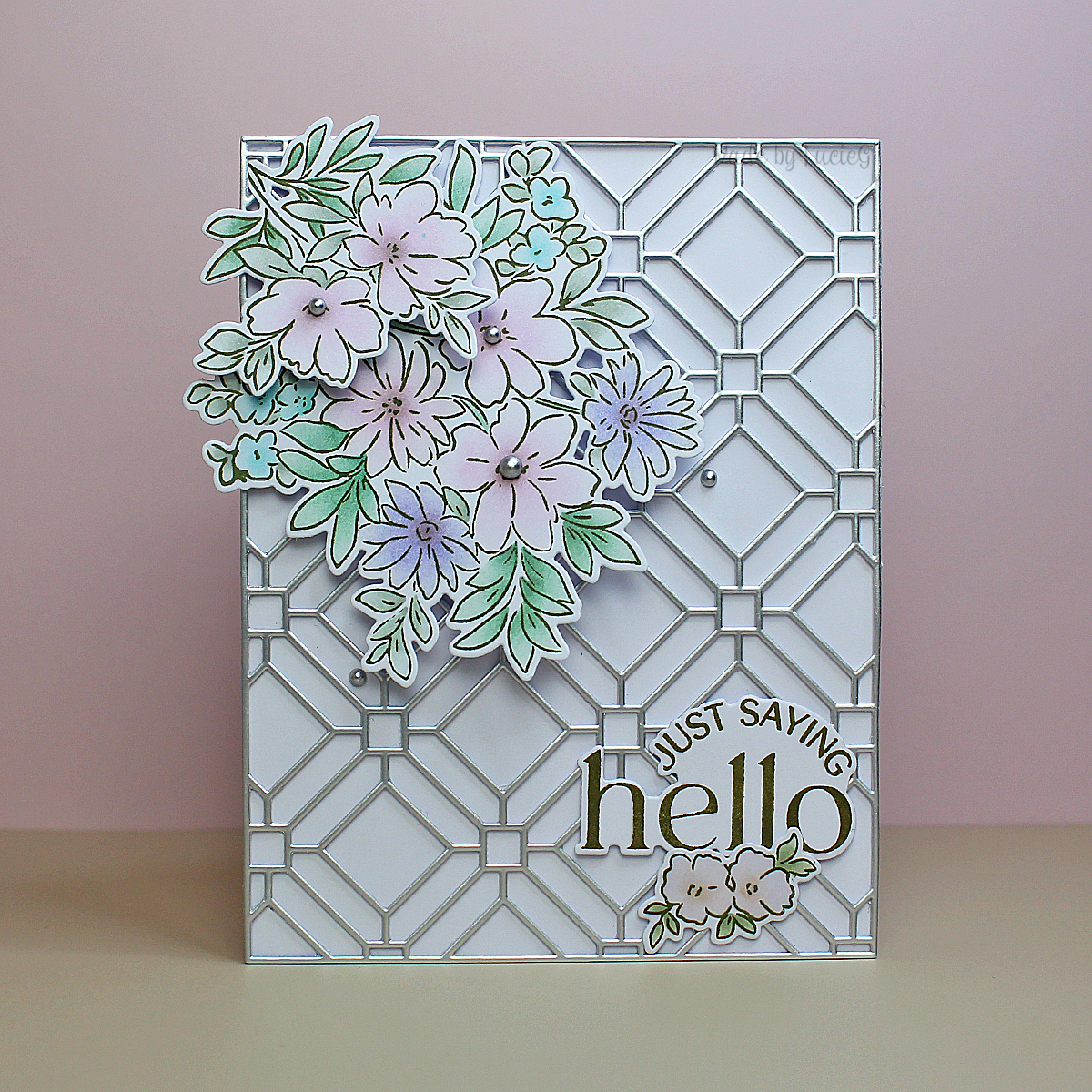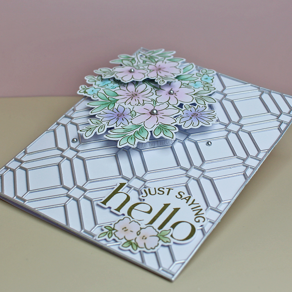 I used the Garden Trellis background die that I got free with an order last year and added some bits from the Flowers for the Soul products suite that I remember creating as soon as I received it. Don’t know why I never got round to using them!