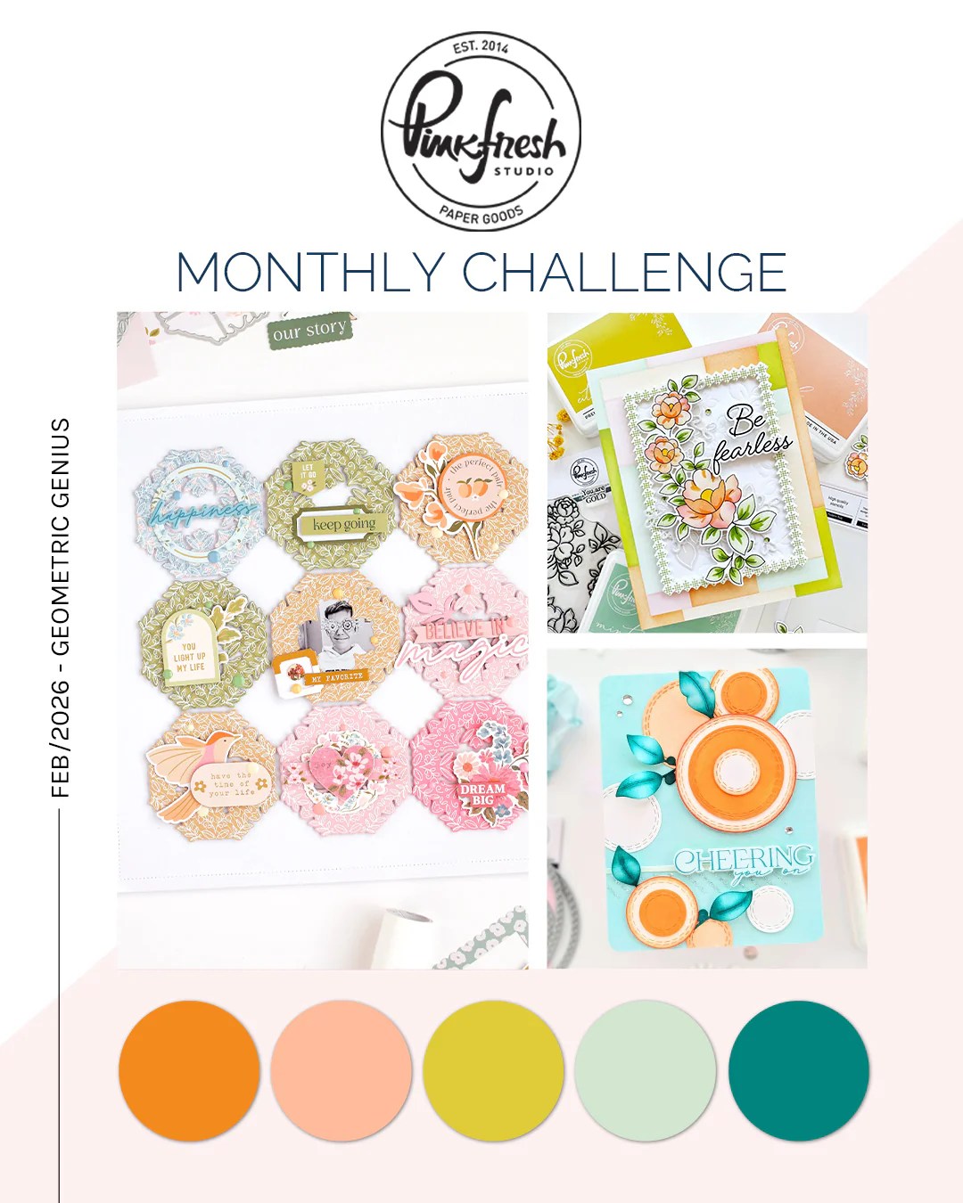 Today, I decided to make one more entry for the current Pinkfresh Studio monthly challenge which has a theme of ‘Geometric Genius’.