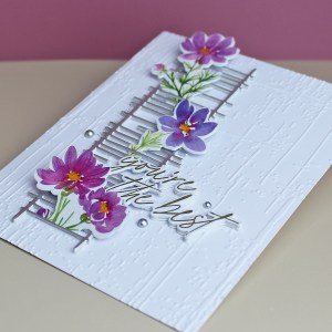 Today I used some die cut washi images from Pinkfresh Studio’s Whimsical Blooms product suite with a fabulous frame die that I picked up in the recent Sizzix sale. The frame reminded me of a fabulous older Taylored Expressions embossing folder called Weathered, so I pulled it out and used it for my background! The sentiment is from the Enchanting Flora product suite.