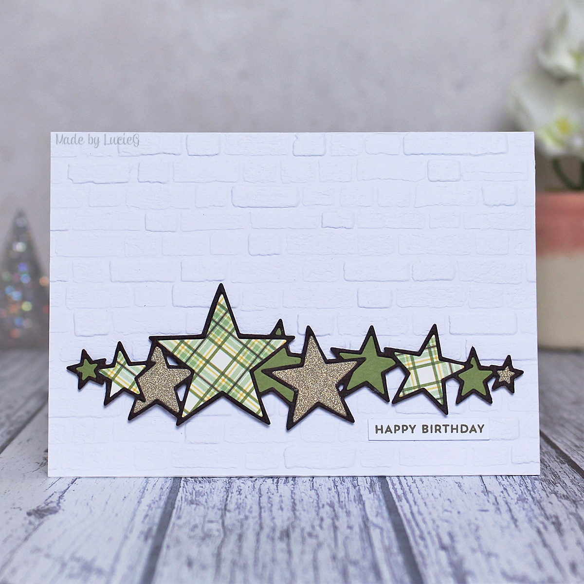 I started with the bouquet from the Enliven mini stamp set (30-705) and coloured it with my Twinkling H2Os and Prisma pencils before fussy cutting around the image. That took AGES, but it was worth it. I decided to add some die cut foliage using dies from the Leaflets set (51-129), the Hanging Planters set (51-501) and the Autumn Decor set (51-653).
