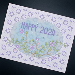 I often feel drawn to bright colours, glitter and a dark card base for my New Year’s cards but this year I ended up creating cards with a white base and softer colours.