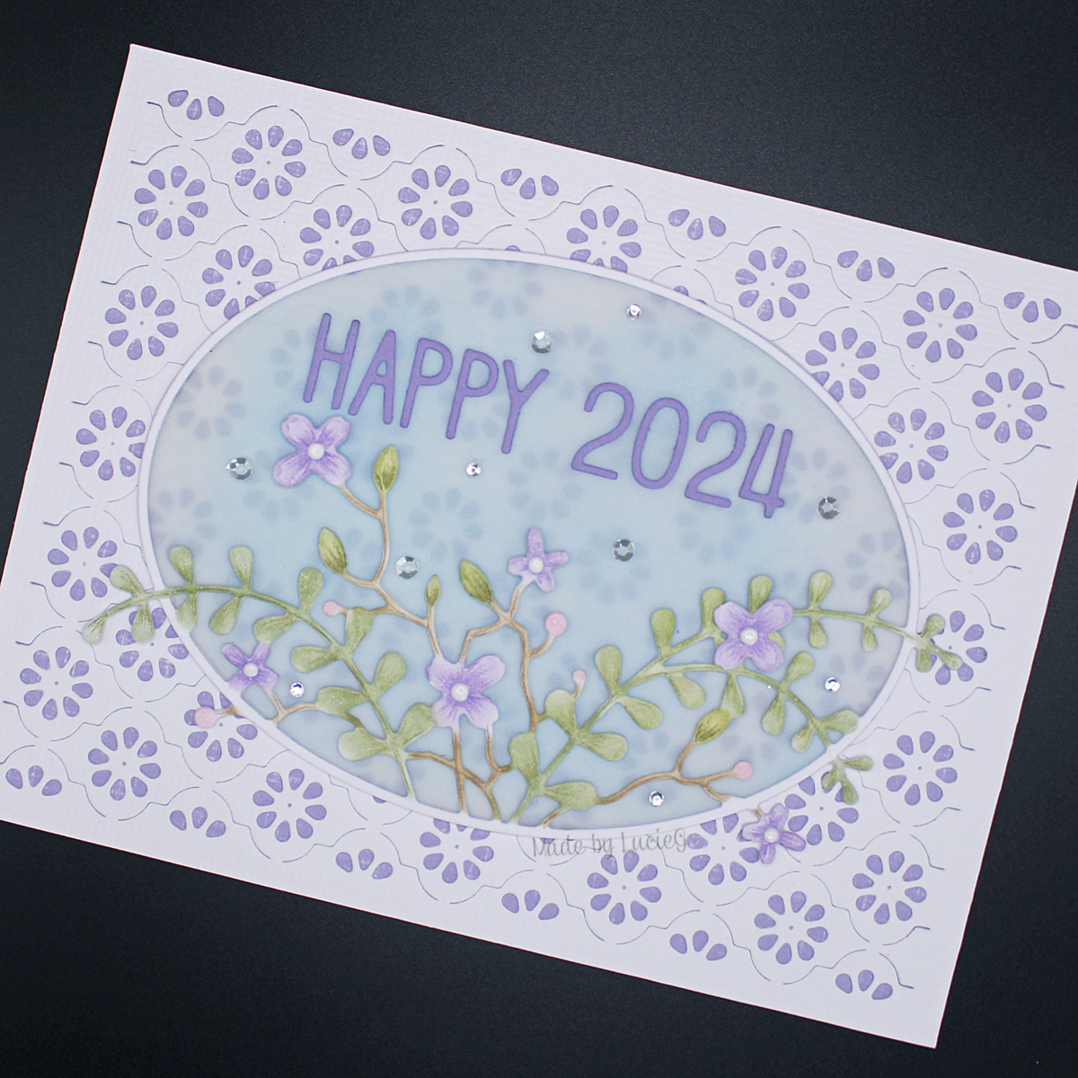 I often feel drawn to bright colours, glitter and a dark card base for my New Year’s cards but this year I ended up creating cards with a white base and softer colours.