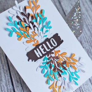 As soon as I saw the combo, I thought of the amazing colours produced when using Frayed Burlap Distress Oxide Stain! It’s my favourite oxide stain because of its unique colouring that appears as you wet and dry it multiple times. So I made a quick inky panel and then cut it using the Simon Says Stamp Vine background die that was gifted to me by a sweet crafty friend very recently.