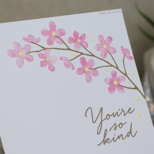 For my card, I used the Beautiful Branches stamp set and dies from Concord & 9th. After stamping the branch using Distress Oxide ink, I cut to blossoms from some pink and white vellum that I’ve had in my stash for many years! Once I had an arrangement I was happy with, I stuck down the flowers and added a stamped greeting and a few Nuvo drops to finish the card.