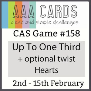 My team mates have come up with some beautiful cards which are on the AAA Cards challenge blog. We are also joined a previous challenge winner, Coni, who has some lovely inspiration on her blog!