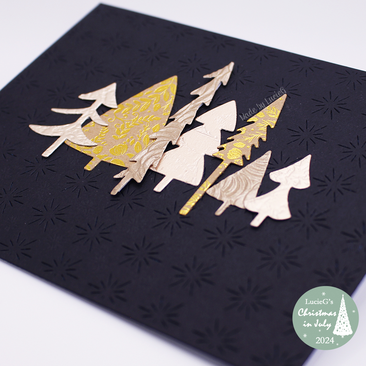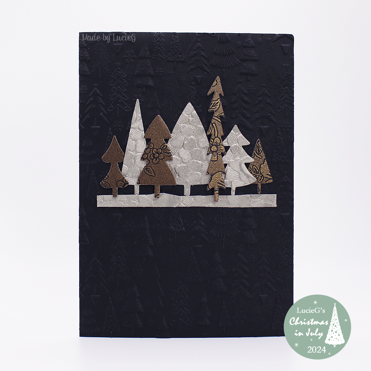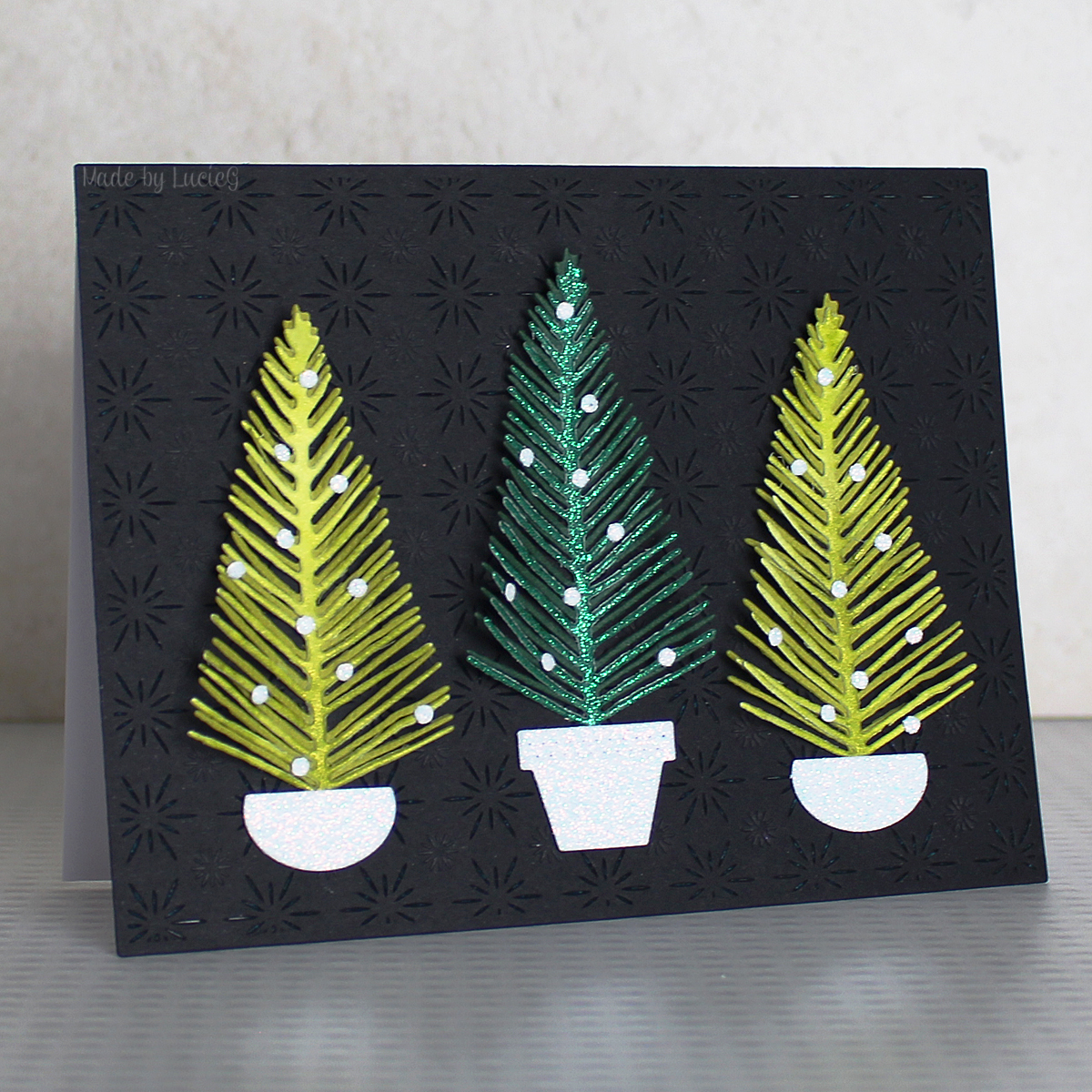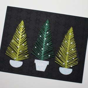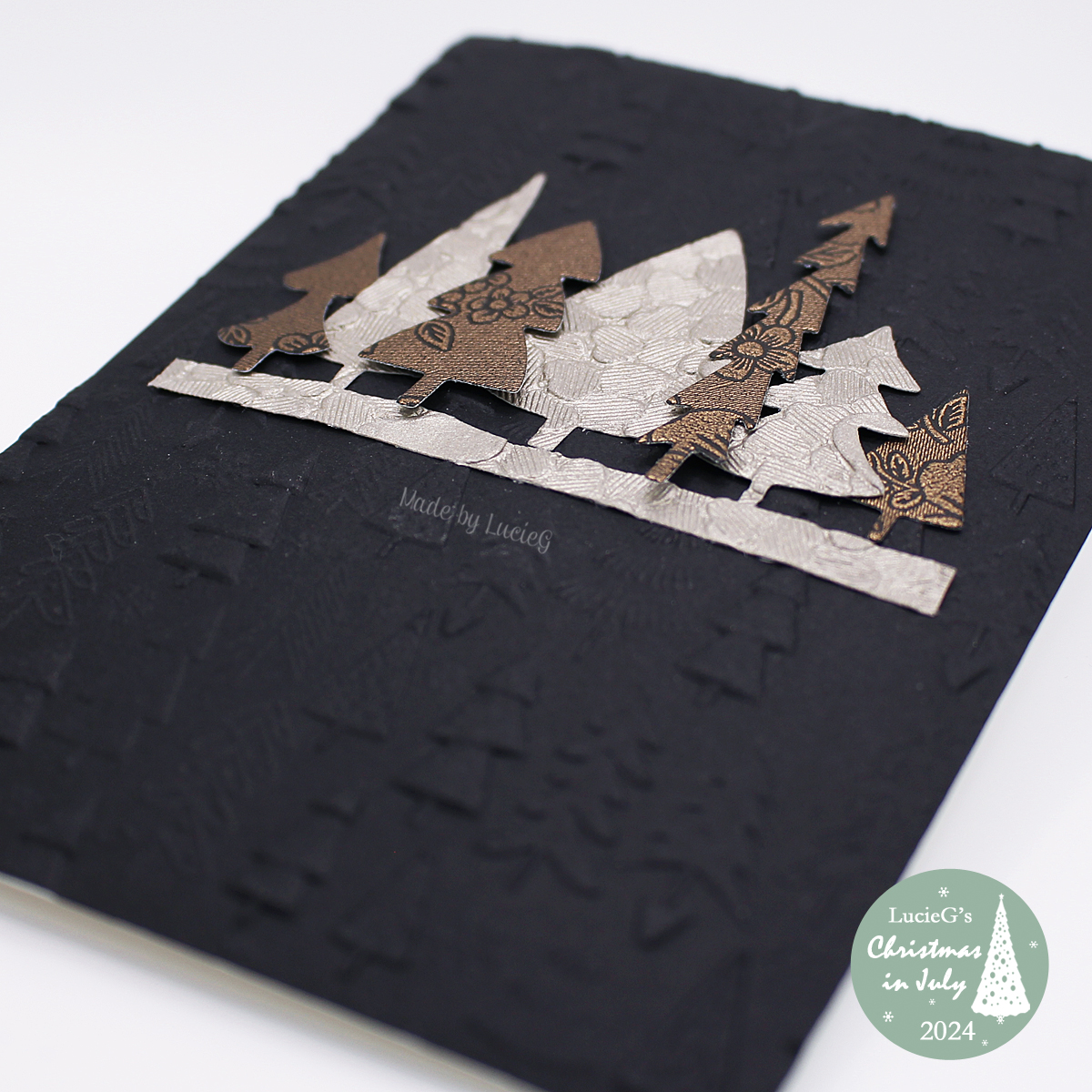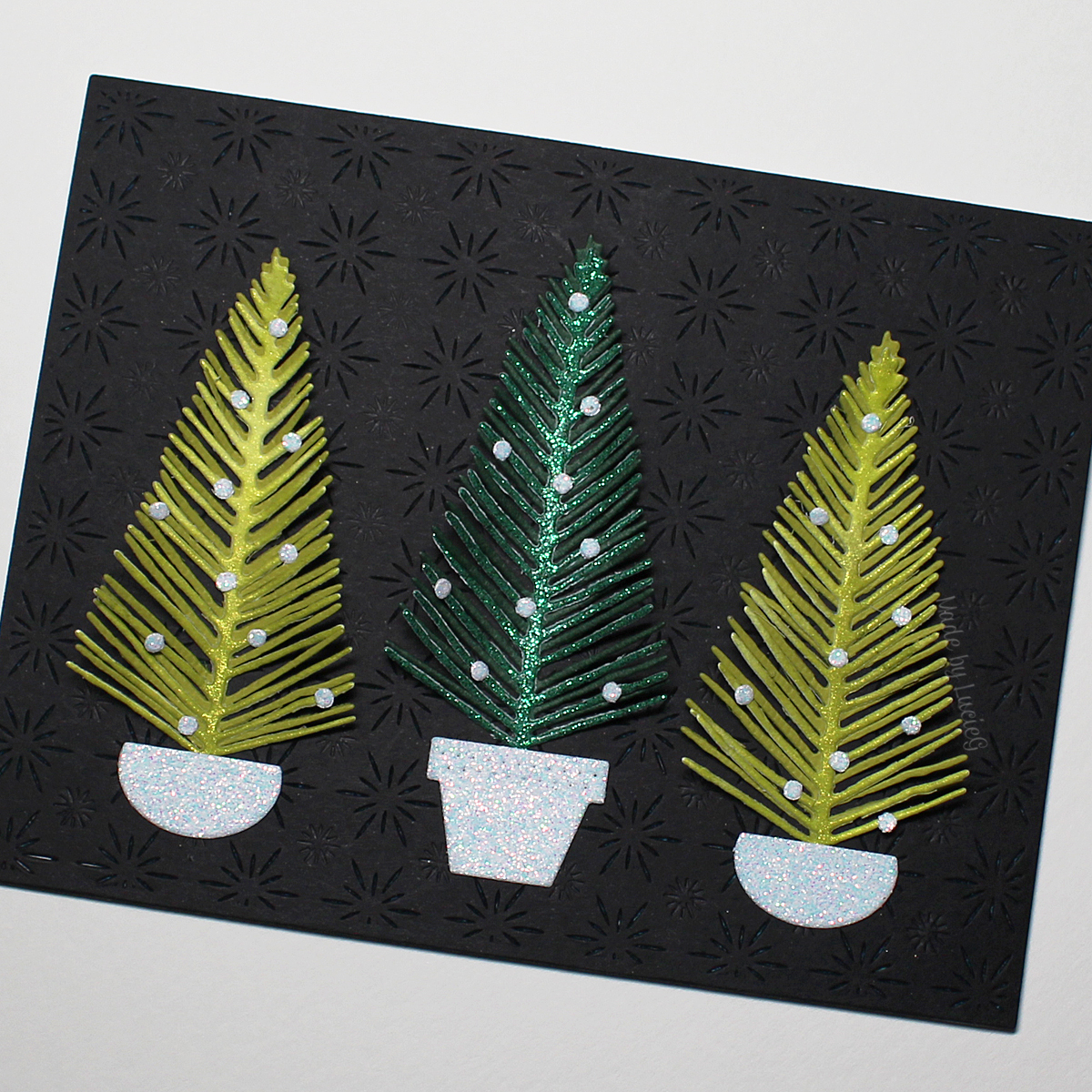For my third card, I embossed the background with a favourite Sizzix folder – I just love those little deep embossed trees.