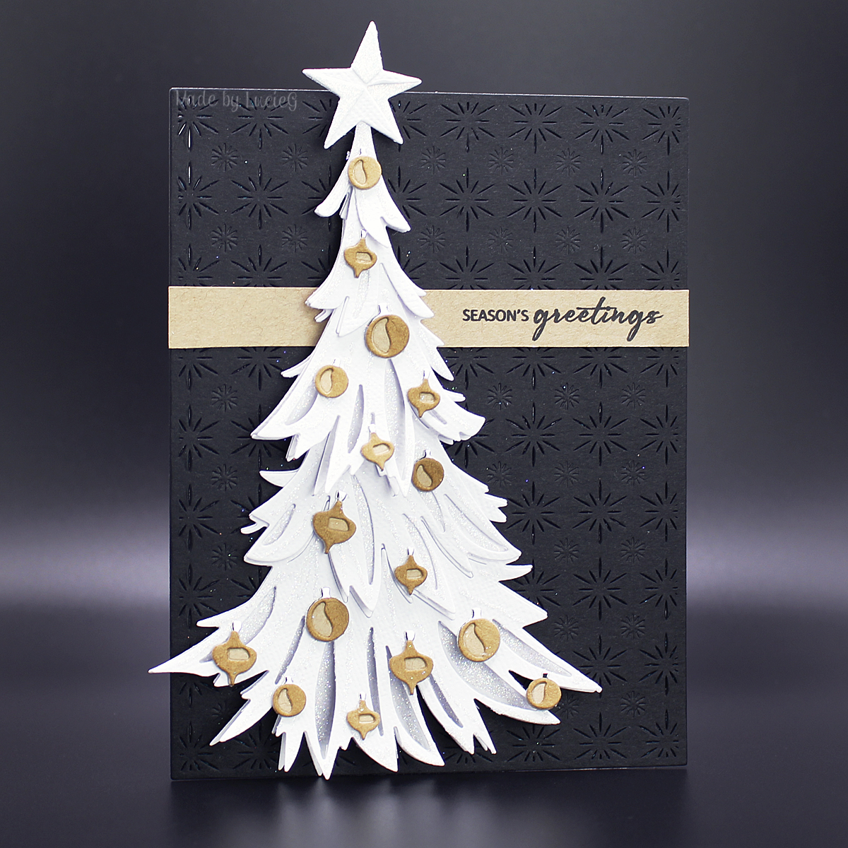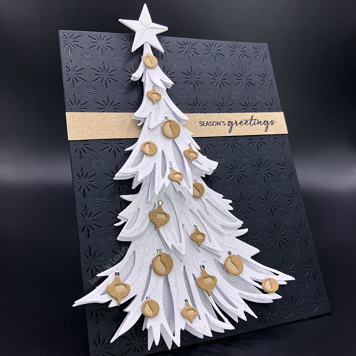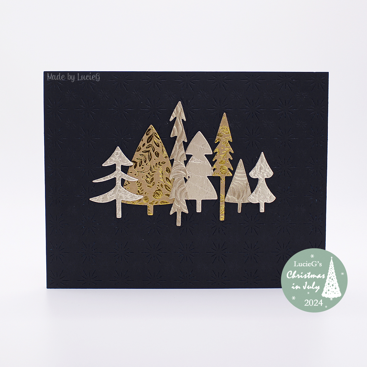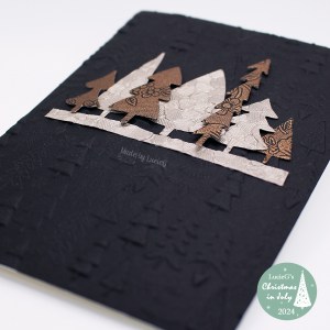 The idea for the cards popped into my head last night when I was looking for base card for my pinecone sprig. I tried some Tonic Studio speciality paper – it wasn’t right but I vowed to use it today… well I certainly did that! The tree images are from a set by Marianne Designs that I got a few years ago. I think I can safely say that I really don’t need that coverplate/tree die set that I was thinking about at the start of the month!