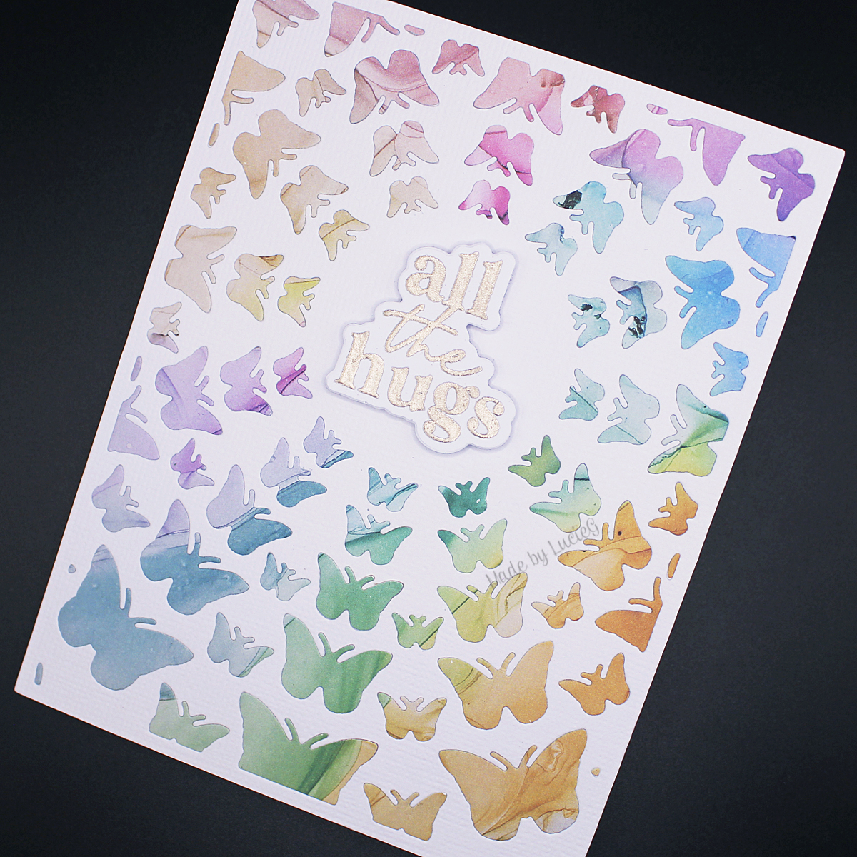 I started by ink blending part of my card base and then stamped the shelf images using Distress Archival inks. I wish that the connectors had been a little longer so that I could stamp them from the top of the ink blending but I wanted to align the three shelves like the squares in the sketch so I decided I would use a die cut to anchor the top of the shelves.