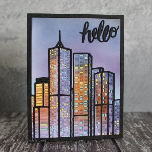 For my card, I embossed an older image from Magenta Art Stamps with the fabulous Altenew golden peach embossing powder. I added some shading to the base of the trees using a white pencil and also stamped a Clearly Besotted sentiment with white ink. Finally, to anchor my image, I dry-embossed a square frame.