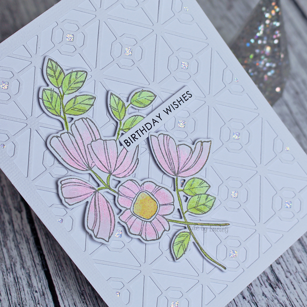 Sounds simple doesn’t it! Believe me, the making of this card was certainly NOT a smooth process! This was actually my fourth attempt at the SAME card for this challenge. After messing up the stamping twice, when I went to write this blog post, I realised that I had inadvertently used POPPYSTAMPS dies for the card I had made specifically for for a MEMORY BOX challenge! Argh! As I was well-practiced with this design, I simply made it a fourth time with different inks and dies! You can see the other card here!