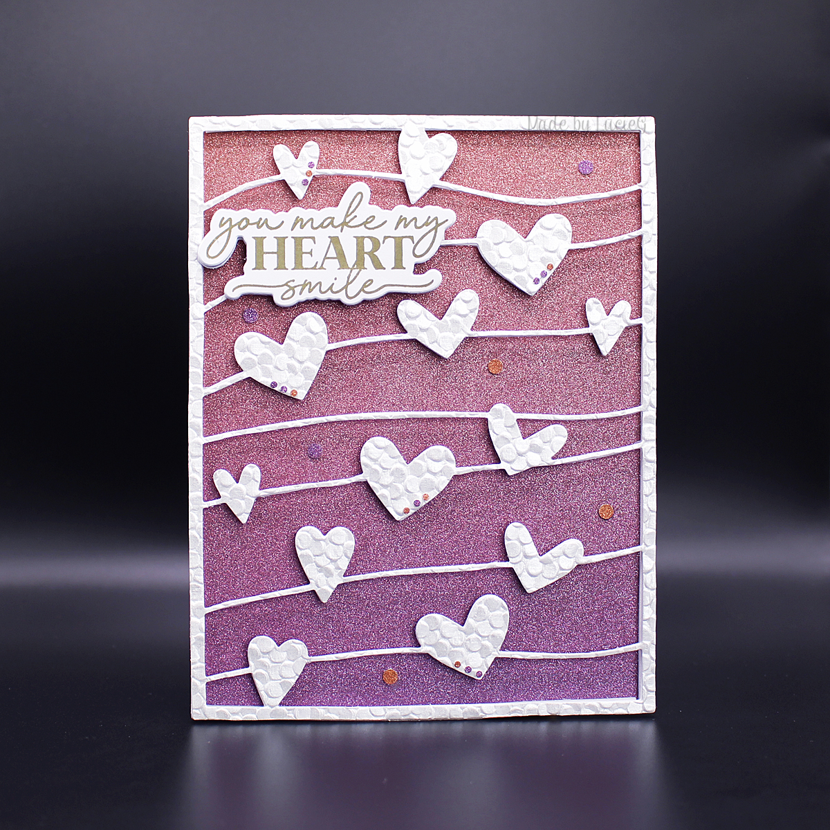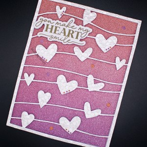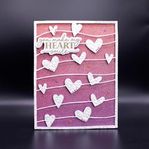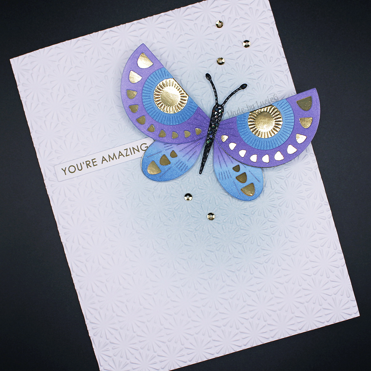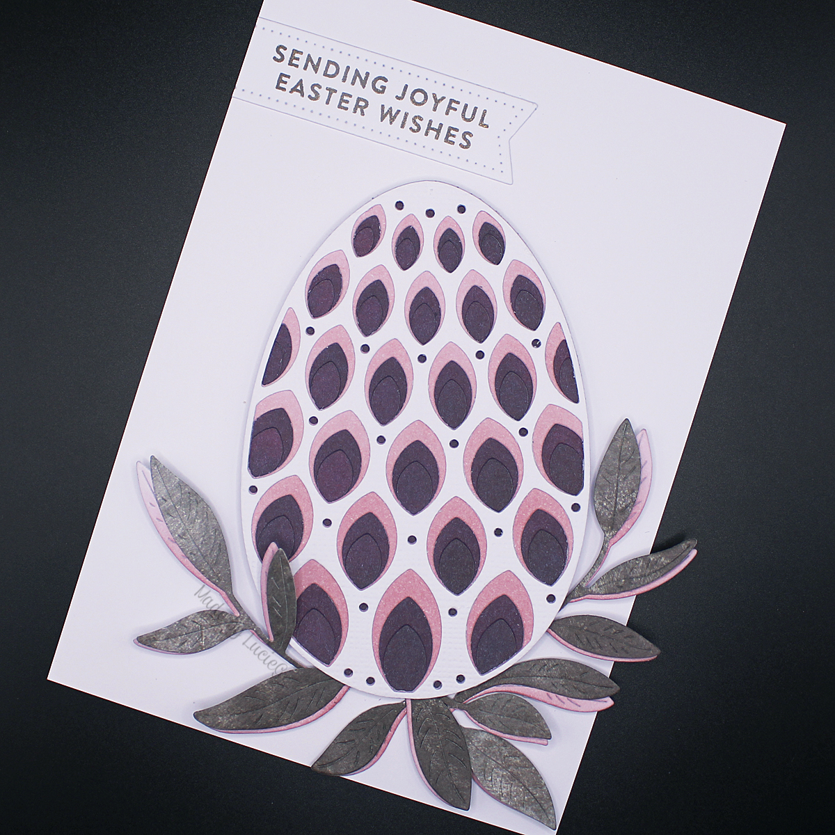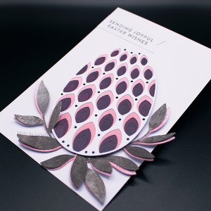 The card design went through MANY versions: a background die (no), an embossed background (no), foliage at the top and bottom (no), foliage at the top only (also no)… but I think I needed to go through each step to get to the final version… and it didn’t actually take THAT long to go through all the stages. The foliage I kept is by Pinkfresh Studio and the cute bow is an older Poppystamps die.