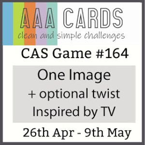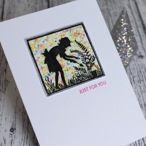 The twist was a bit of a challenge for me as I don’t watch many TV shows. I do try to watch Gardeners’ World, so I pulled out an old Hero Arts silhouette stamp and got to work. I stamped the image in black ink and then embossed it with clear embossing powder. Taking inspiration from