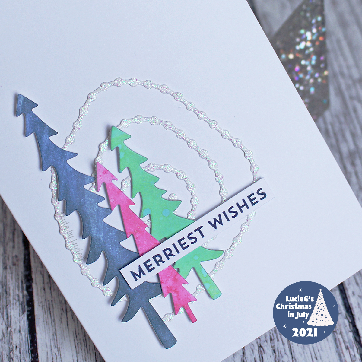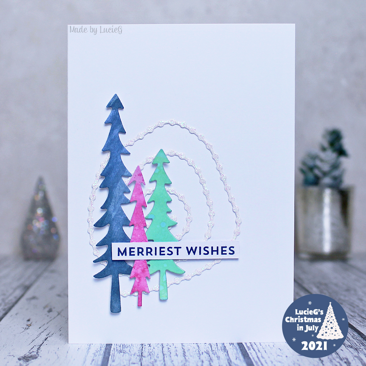 Last year, I bought the Concord & 9th Take a Bough Trimmings dies. I don’t have/want the Take a Bow set, but I could see so many uses for the Trimmings set. I really wanted to use the garland as a background layer but of course I just didn’t get round to using it in that way before Christmas. Today was the day that I used that garland! I paired it with Christmas trees by Newton’s Nook and Marianne Designs which I cut from some inky backgrounds I had on hand. To complete this card, I added a sentiment by My Favorite Things.