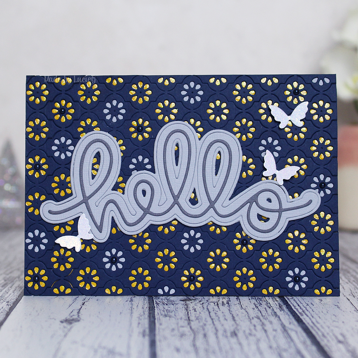 I used the beautiful daisy chain background die by Pinkfresh Studio. This die does not cut an edge, which was perfect for me as I could make a UK card size by simply adding a row or two at the bottom of the first die cut area.