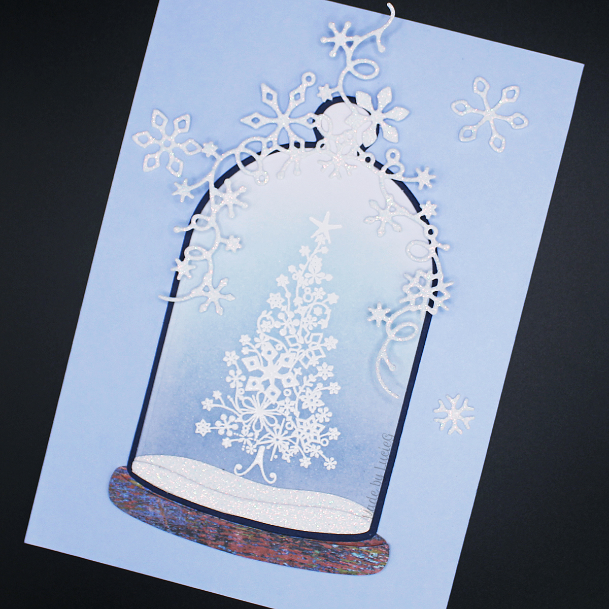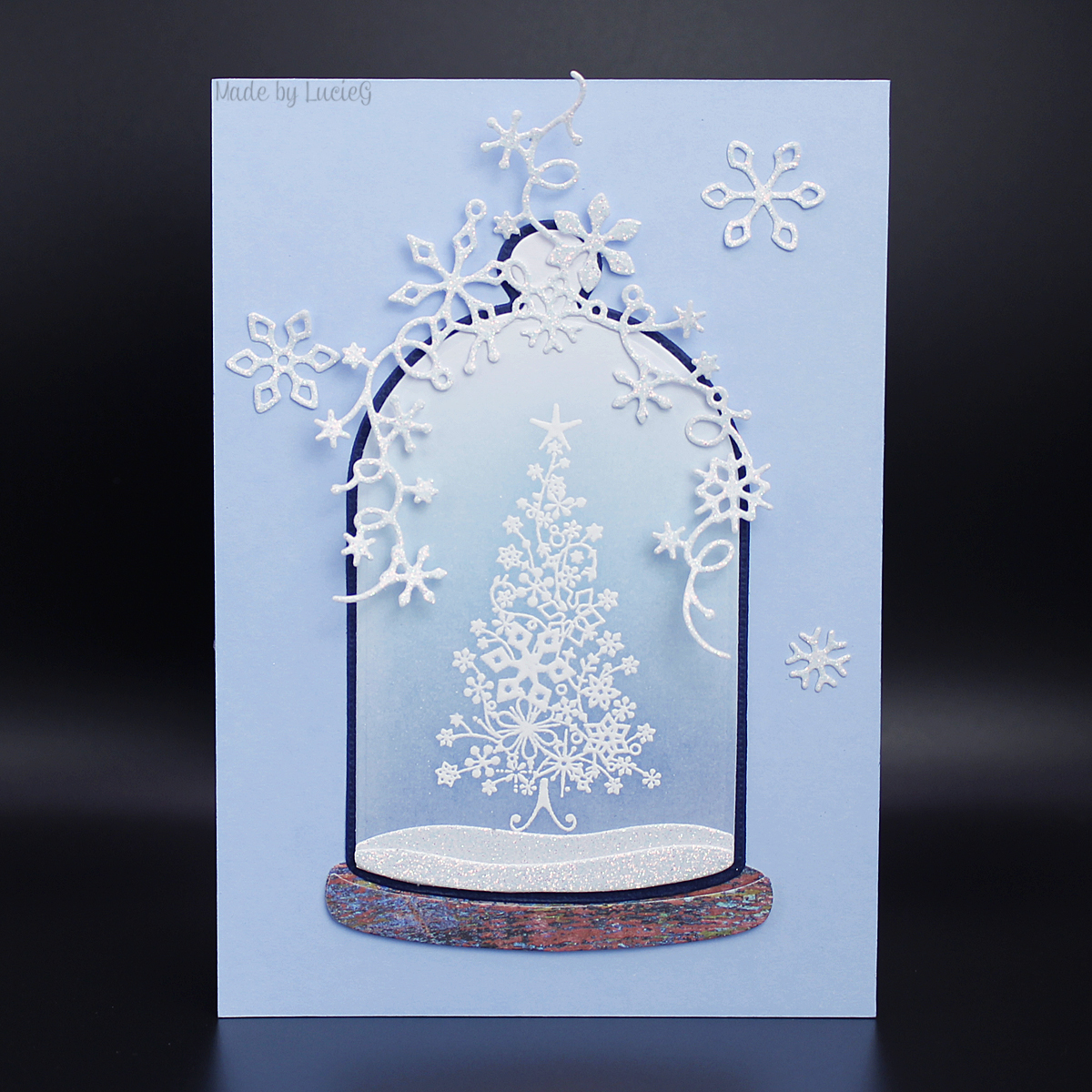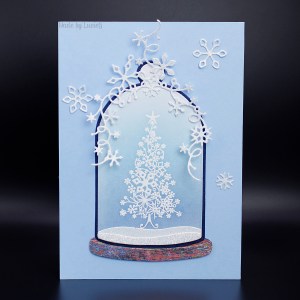 I used a number of the Concord & 9th dies to create the cloche scene which I adhered to a blue card base and then added the flourish and flakes from the Memory Box Wintry Snowflake Bundle set.