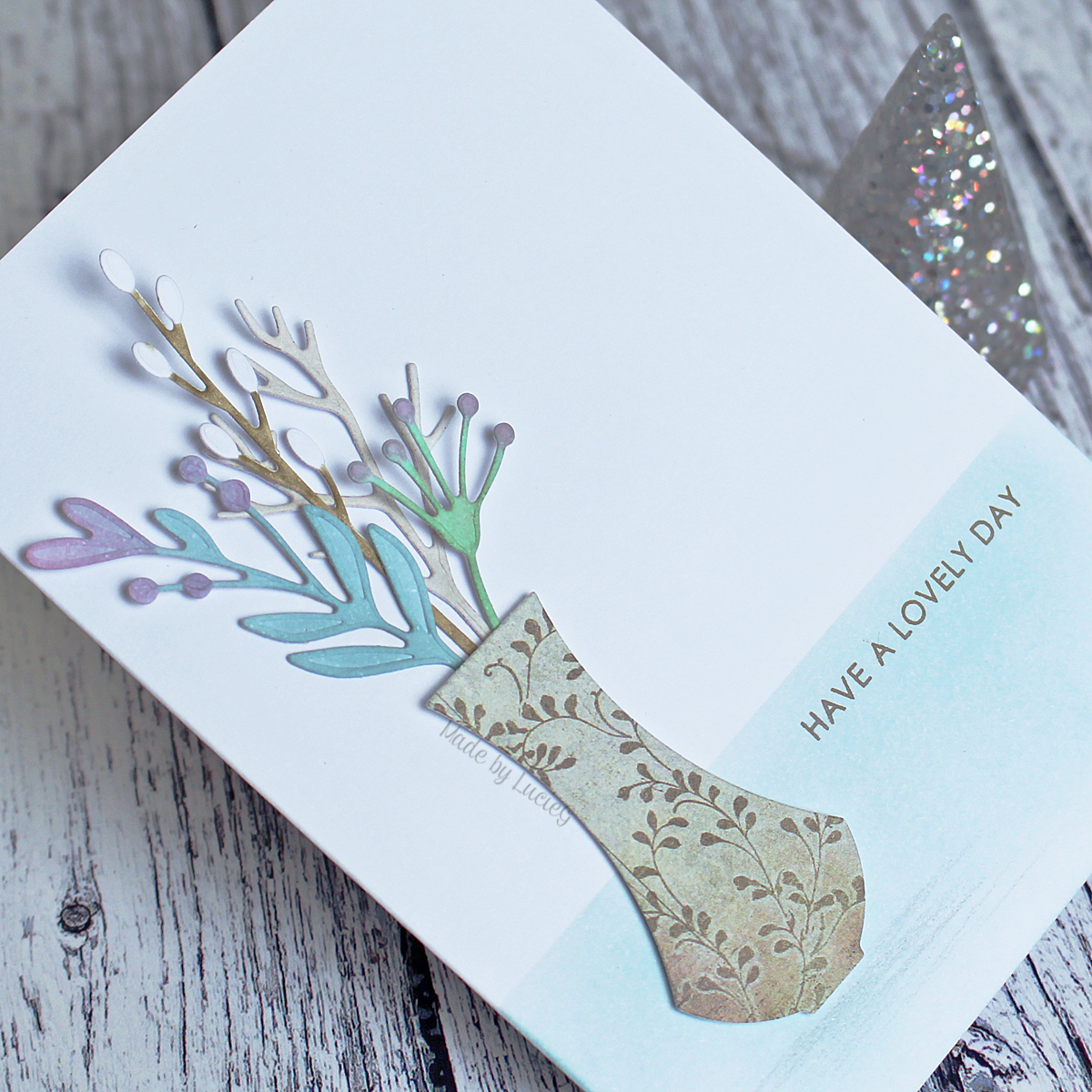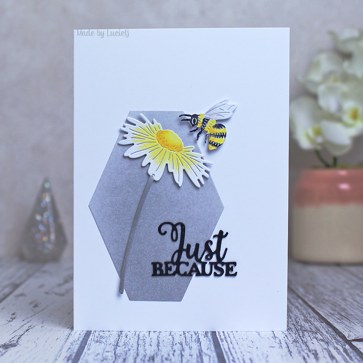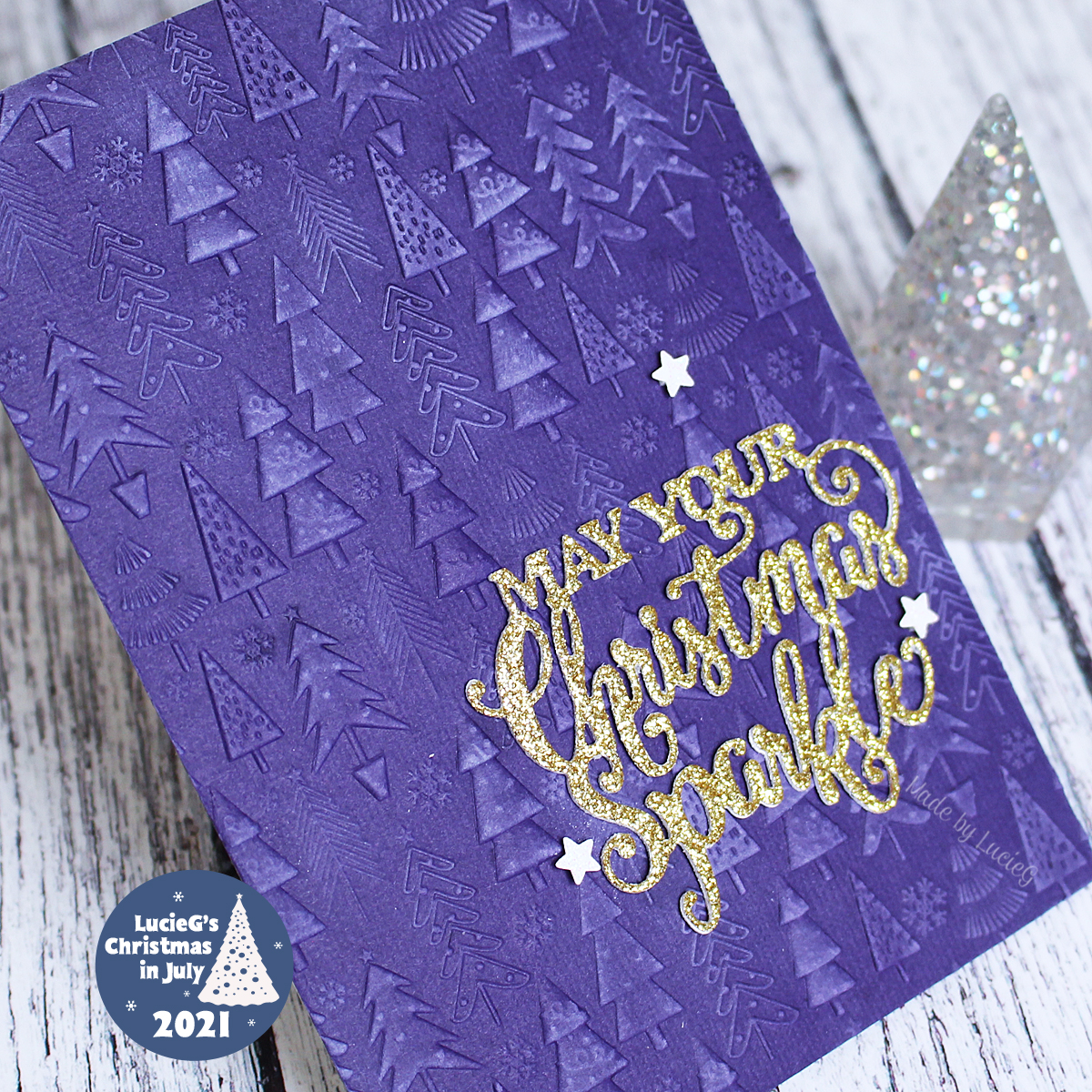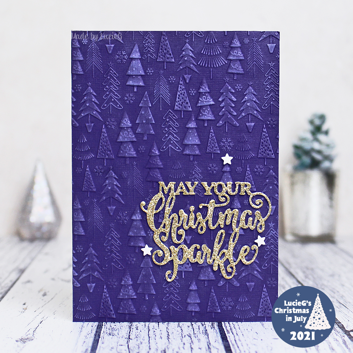 I added a glittery golden sentiment by Creative Expressions and finally a few white stars, just in case the white inking was a little too subtle!