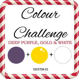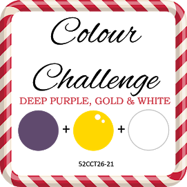 Today I’m playing along in the colour challenge at the Christmas Card Throwdown where the combo is deep purple, gold and white.