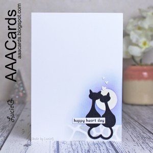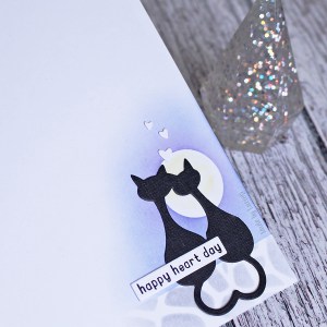 I had fun with this one! As the challenge spans Valentine’s Day, I knew I wanted to include that in some way as well as creating a scene. Inspired by this cute Frantic Stampers kitties die, I used Funky Fossil Designs’ Dry Stonewall stencil for the kitties to sit on and then softly blended some distress ink to create the moonlit sky. To complete my card, I added a few die cut hearts and my favourite Reverse Confetti sentiment – which I use every February without fail!