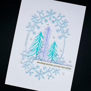 I don’t usually do scenes that cover a whole card but I bought this fabulous Sizzix stencil set a few weeks ago – I love how quickly stencilled scenes come together.