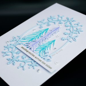 The sentiment is by from a very old Hero Arts wood-mounted stamp set. I stamped it from Cloud 9 Silver ink – unfortunately it dried with a rather mottled effect but I felt it went well with the card.