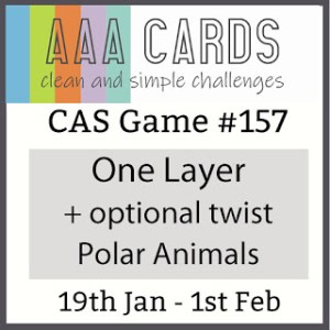 It’s time for another challenge at AAA Cards! This fortnight we’d like you to create a one-layer CAS card; our optional twist is ‘polar animals! Our sponsor is Ink Road.