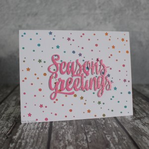 Watching the blue powder melt into the silver brought back all those memories of heat embossing for the first time! It’s so magical! When I started crafting, my mum and I bought lots of different coloured embossing powders to share. They’ve been at the back of our cupboards for a LONG time but I pulled mine out yesterday… and after this, well let’s just say, I will be seeing a lot more of those coloured powders! The background stamp is by Penny Black and I used a Savvy Stamps sentiment die stuck on vellum to finish it off.