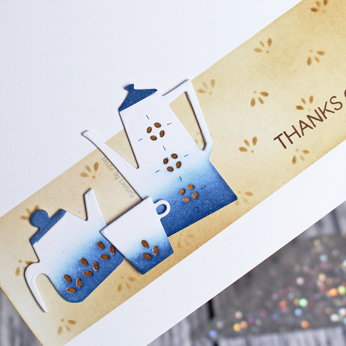 It should come as no surprise that I chose the middle row – die cutting AND a chance to use some of my patterned paper mountain? Yes please! I chose an older die by Lil Inker Designs, a few sheets of blue patterned paper and got to work! It’s quite weird that my card for Day 31 uses the same technique that I used for Day 1! The sentiment is by Mame Elephant.