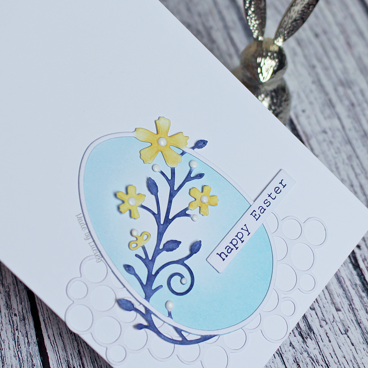 I added a sentiment by Memory Box and a few gems to complete my card.