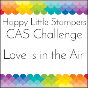 I’m back and playing along with a few challenges with this card today – I used the sketch from the Global Design Project challenge and was inspired by the inspiration photo at the Time Out Challenge. I’m also linking this up to the Happy Little Stampers CAS challenge where the theme is ‘love is in the air’.