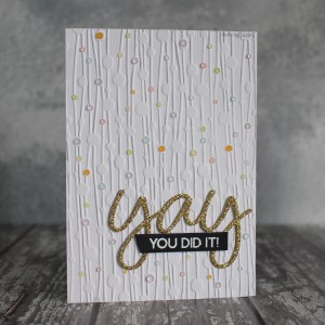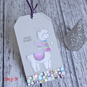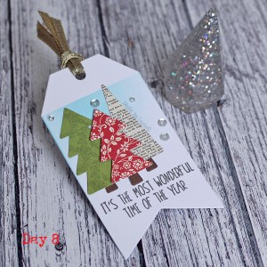 Day 8’s inspiration is Day 15, 2015 when the sponsor was Neat & Tangled. They closed earlier this year, but I do have a few of their products and decided to use the Nordic Trees stamps and dies from my take. I was inspired by Danielle’s clean tag – with the subtle ink blending and sequins!