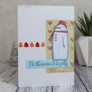 I adhered a strip of Basic Grey paper to the left side of my card and then adhered a white panel to the right side of the card using funky foam. I embossed a sentiment on a strip kraft cardstock and adhered that, plus some more Basic Grey paper to the white panel. Finally I adhered the Rad Roses and finished off my card with a few gems.