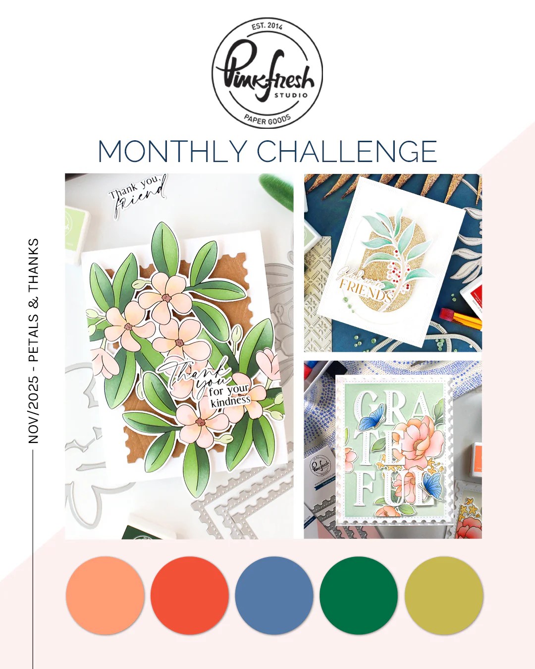 I can’t quite believe we’re almost at the end of November! Where did the month go? I almost missed the window to play along with the Pinkfresh Studio monthly challenge which has a most LucieG-appropriate theme of ‘Petals & Thanks’! I’m very thankful I didn’t.
